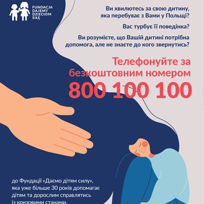 FDDS uruchomiła dyżury w telefonie 800100100 dla osób z Ukrainy przebywających w Polsce z dziećmi. Trzy razy w tygodniu na ich pytania czeka psycholożka.
