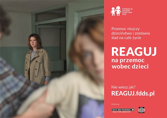 Fundacja Dajemy Dzieciom Siłę rozpoczęła kampanię „REAGUJ na przemoc wobec dzieci”. Celem kampanii jest zwiększenie społecznej gotowości do reagowania w sytuacjach, gdy podejrzewają, albo widzą, że dziecko doświadcza przemocy. Na stronie kampanii REAGUJ.fdds.pl FDDS zebrała kluczowe informacje na temat ścieżek i sposobów reagowania, wskazała miejsca i formy pomocy oraz udostępniła niezbędne dokumenty i wzory pism. Do pobrania są też materiały graficzne (plakaty, ulotka), które można wydrukować i powiesić na przykład w swoim bloku lub na swoim osiedlu.