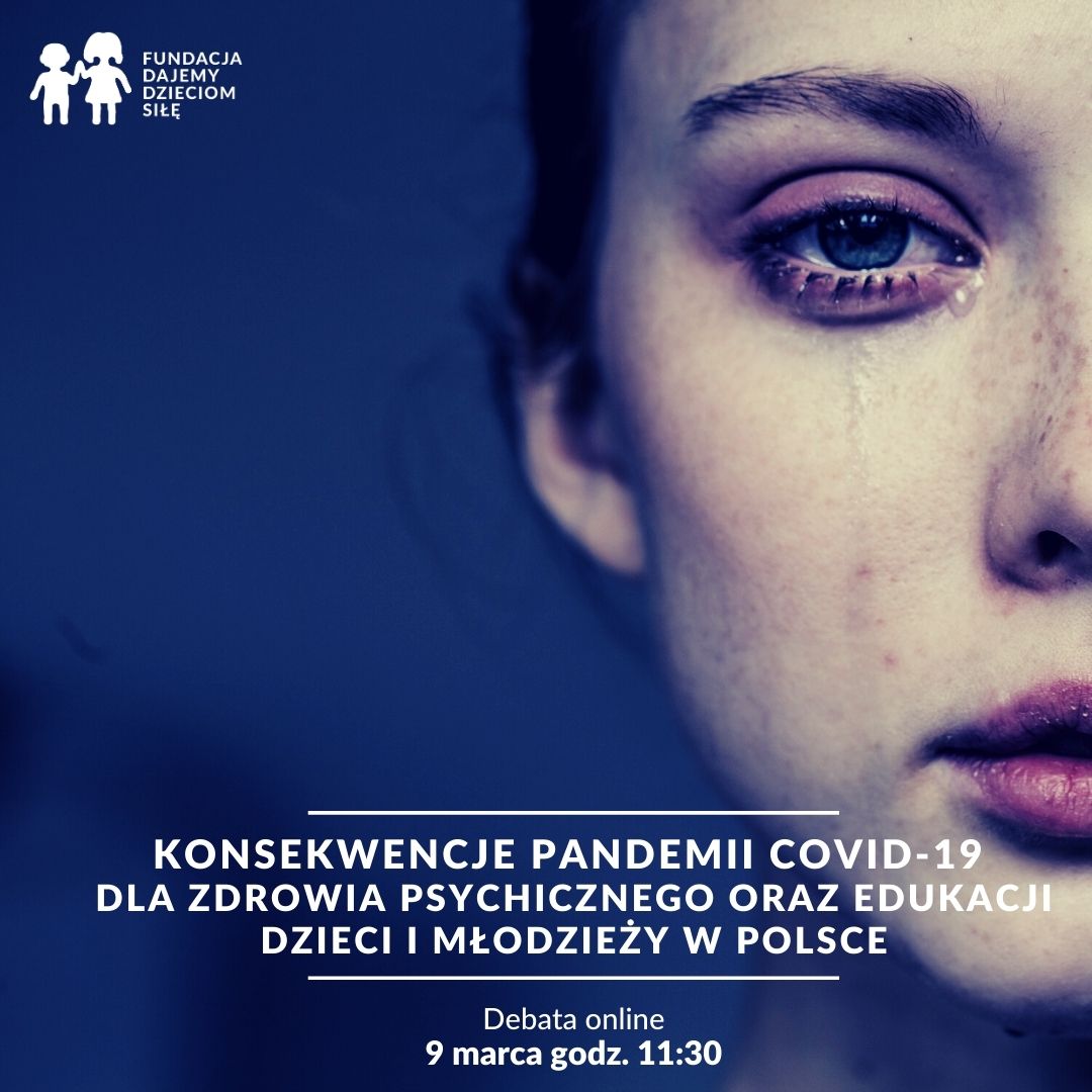 9 marca o godzinie 11:30 Fundacja Dajemy Dzieciom Siłę organizuje debatę online z udziałem ekspertów (psychiatrów, psychologów, pedagogów, interwentów kryzysowych) o wpływie i konsekwencjach pandemii COVID-19 na kondycję psychiczną dzieci i młodzieży, reformie polskiej psychiatrii dziecięcej i kryzysie edukacji.