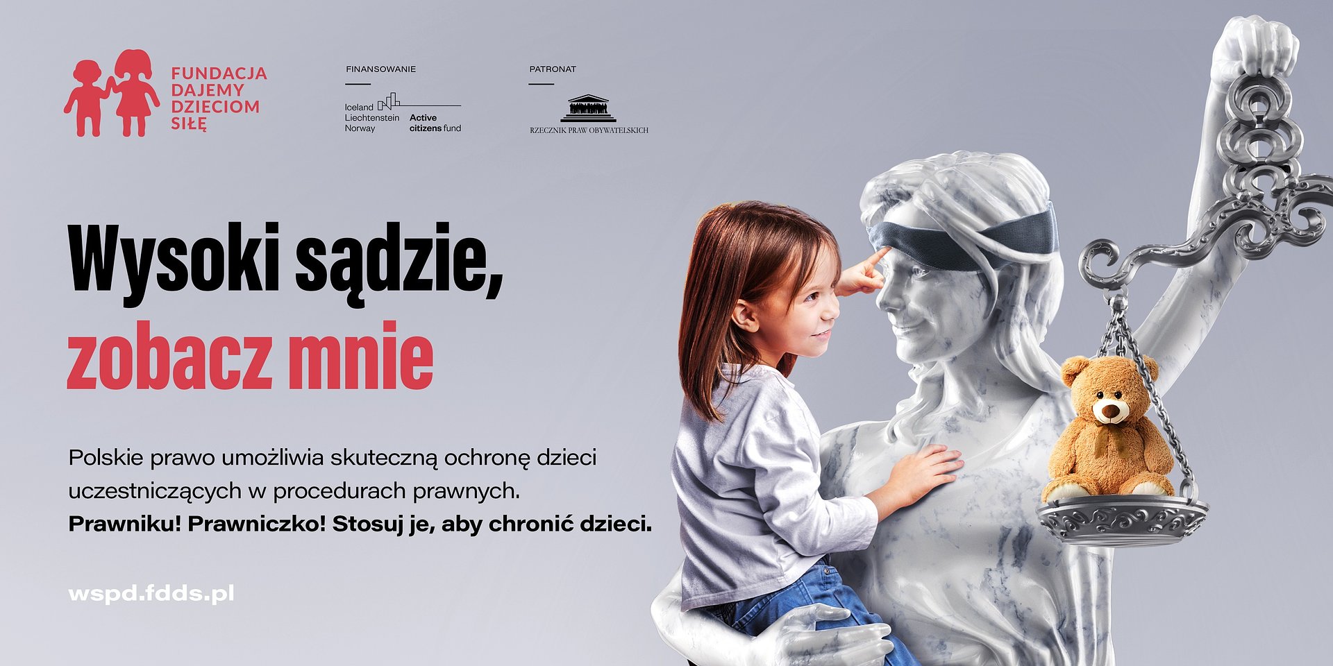 Wysoki sądzie, zobacz mnieCelem kampanii jest wsparcie sędziów, prokuratorów, kuratorów procesowych i wszystkich osób, od których zależy los dzieci stających przed wymiarem sprawiedliwości. Chcemy przypomnieć profesjonalistom, jak wiele zależy od nich oraz że zawsze znajdą merytoryczne wsparcie w naszej Fundacji.więcej >> |